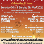 The tournament takes place on Saturday 30th & Sunday 31st May 2026 at Leafy Lane Playing Fields, Corsham and is a particularly special edition for us as the club celebrates its 50th anniversary. Following a record 338 teams in 2025, we’ve expanded again and can now accommodate 352 teams, making it one of the largest […]Read MoreOlder Entries » Highworth U11 H